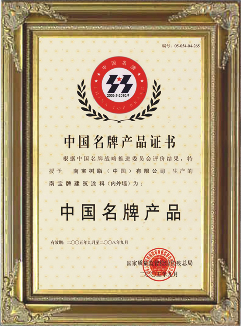 中国名牌产品证书