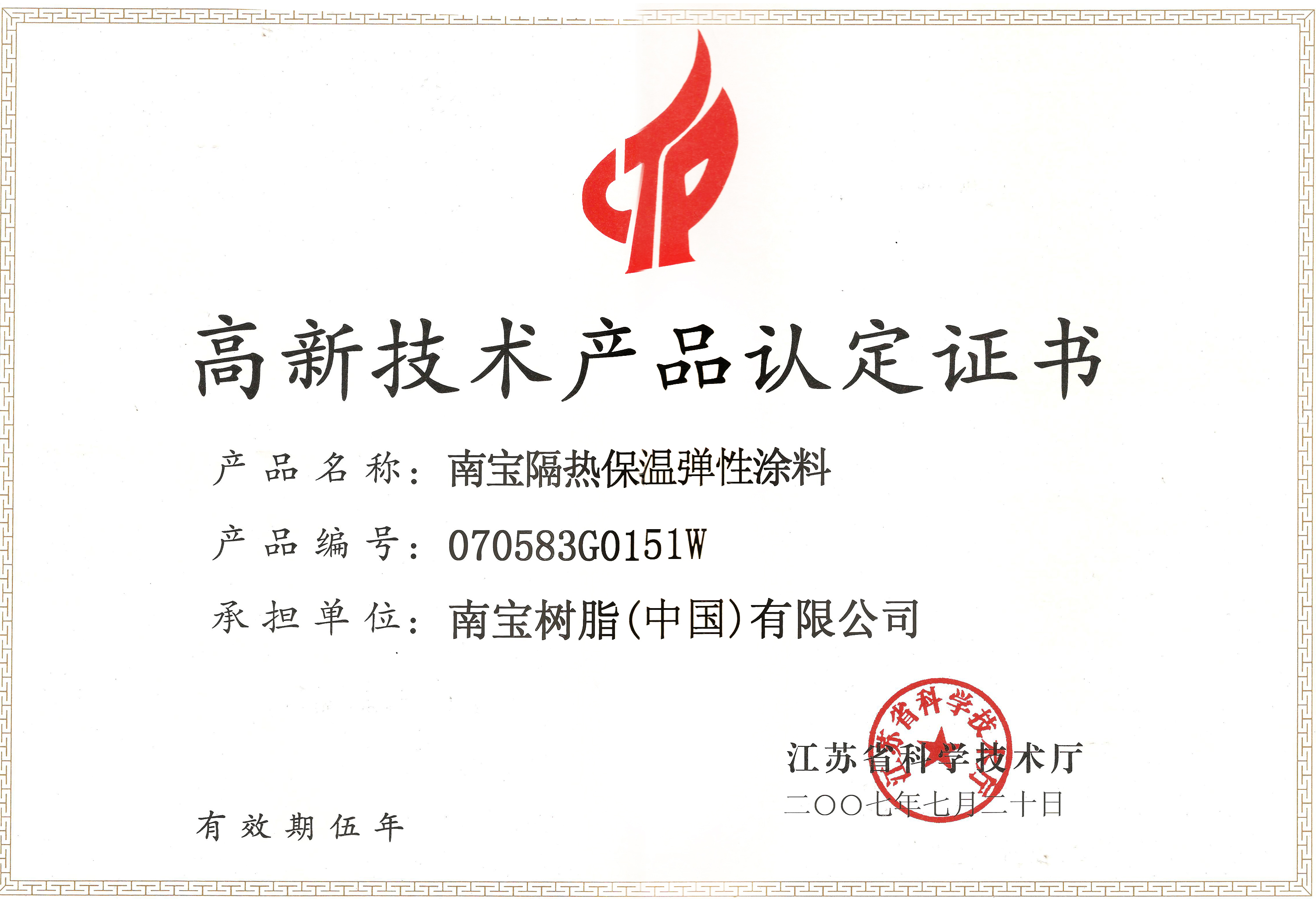 隔热保温弹性涂料高新技术证书