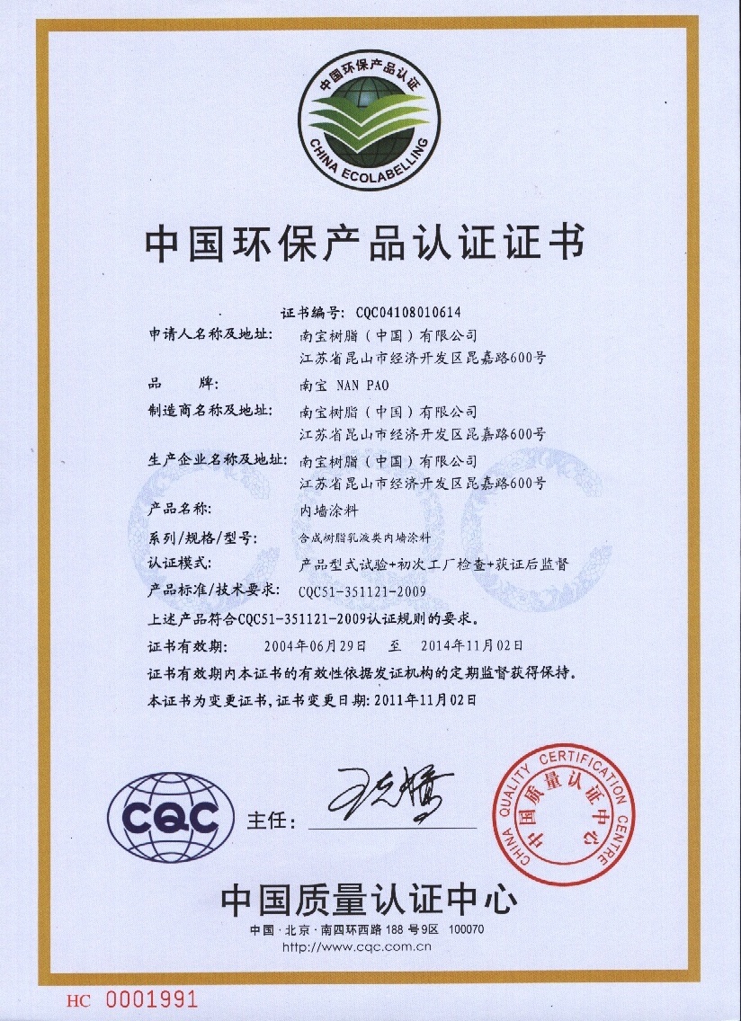 内墙漆荣誉证书